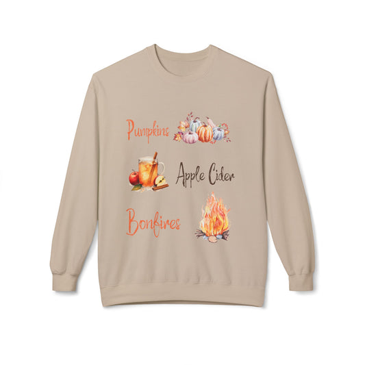 Pumpkins, Apple Cider, and Bonfires: Unisex Midweight Soft style Fleece Crewneck Sweatshirt