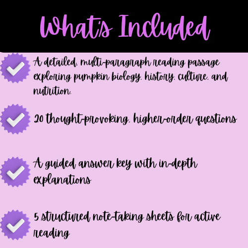 Beyond the Jack-o’-Lantern Reading Passage, Q & A, and 5 Note-Taking Sheets