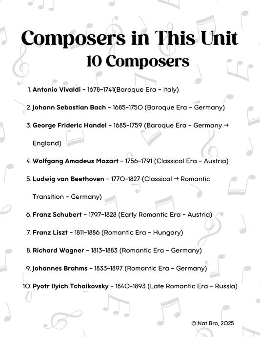 🎶 Listen and Learn Series: Volume 1 – Composers- 192 PAGES