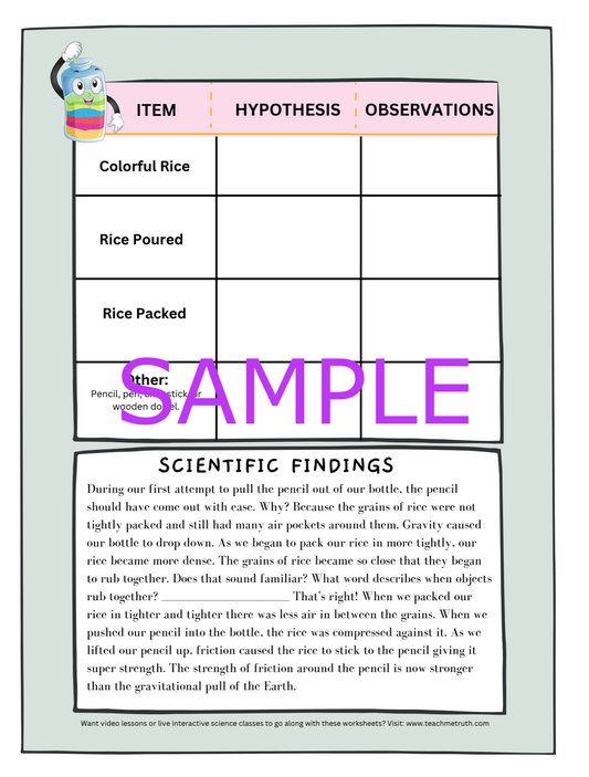 "Friction Rice" Hands-On Science Activity Journal With Instructions