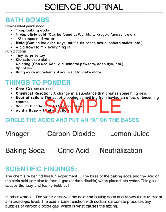 Chemistry Behind Bath Bombs Science Experiment Journal & Step-By-Step Instructions