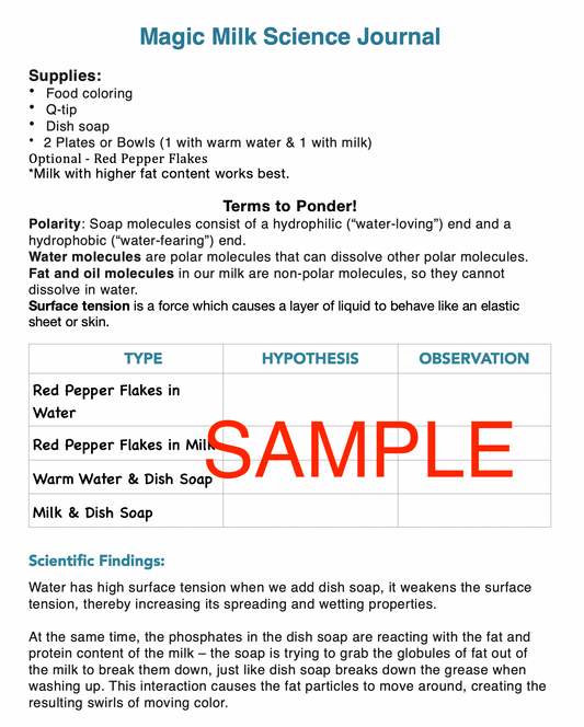 2-in-1 Magic Milk Science Experiment Journal & Step-By-Step Instructions