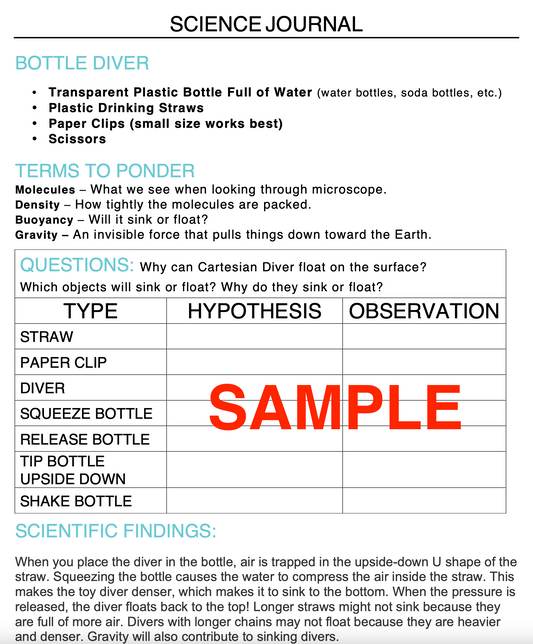 Cartesian Bottle Diver Science Experiment Journal & Step-By-Step Instructions