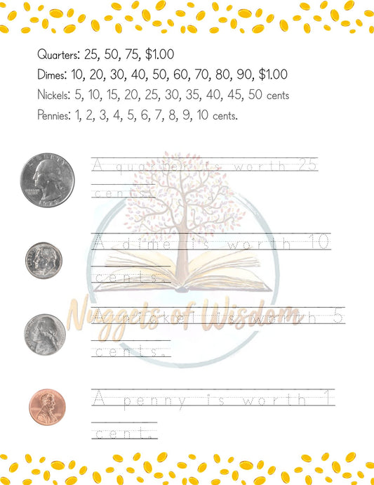 Money Math 2-Page Worksheet for K-1st Grades