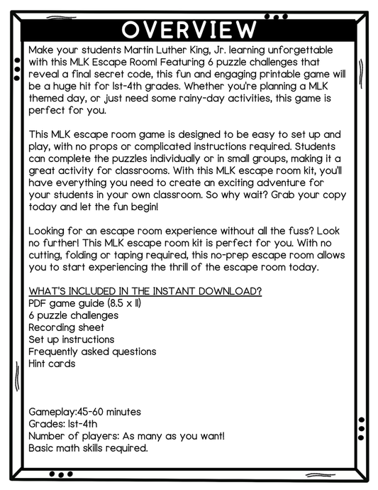 MLK Escape Room, 6 Puzzle Escape Room, MLK