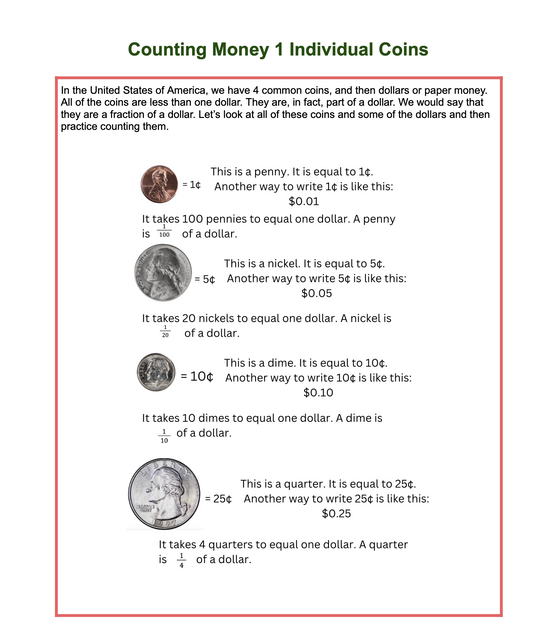 Money of the United States of America, a math unit for kids