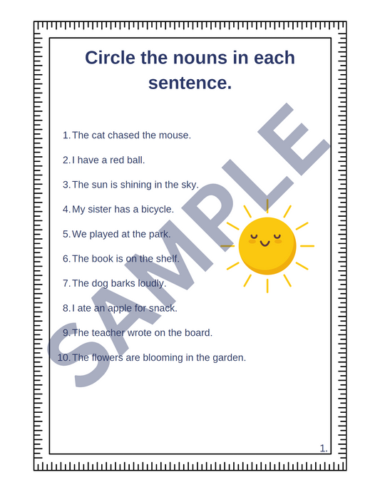 Noun Worksheet Pages for 2nd - 4th Grades