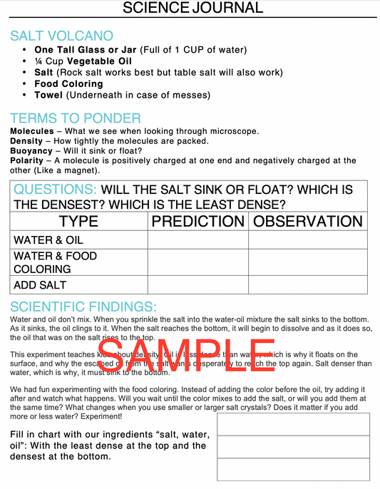 Salt Volcano Science Experiment Journal & Step-By-Step Instructions