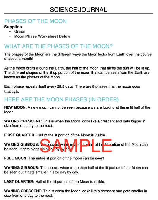 Phases of the Moon With Oreos Science Experiment Journal & Step-By-Step Instructions
