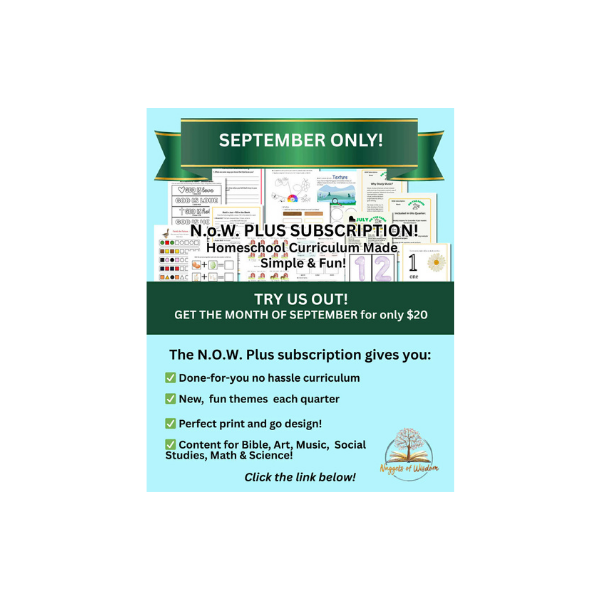 The NoW Plus Curriculum Bundle is a comprehensive, year-long learning experience designed to support families through 36 weeks of engaging, organized instruction. Structured into three trimesters, this subscription provides a steady rhythm of learning that is easy to follow and adaptable to your family’s schedule.