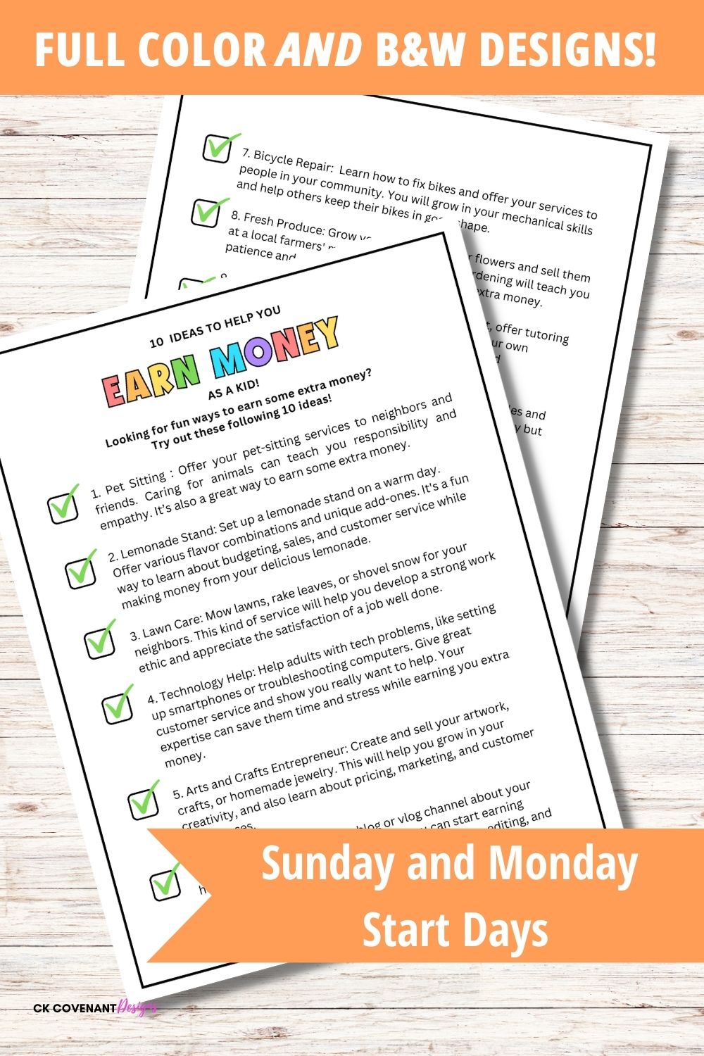 Looking for fun ways to earn extra money? Check out this list of 10 Ideas! Earning your own money is one of the quickest ways to grow strong in managing and saving your own money. From growing your own produce to selling crafts, you’ll be surprised at the variety of ideas you will begin to develop on your own. What are you waiting for? Grab our list today and start earning!