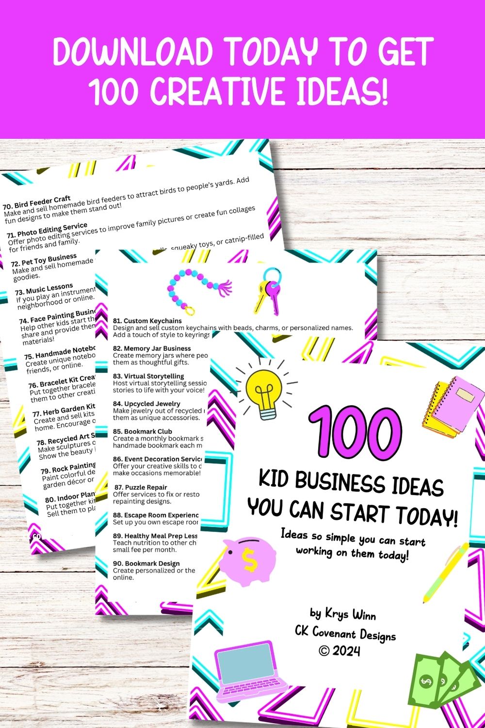 -1 PDF file of "100 Kid Business Ideas You Can Start Today: Ideas so Simple You Can Start Working on Them Today!" e-book.
