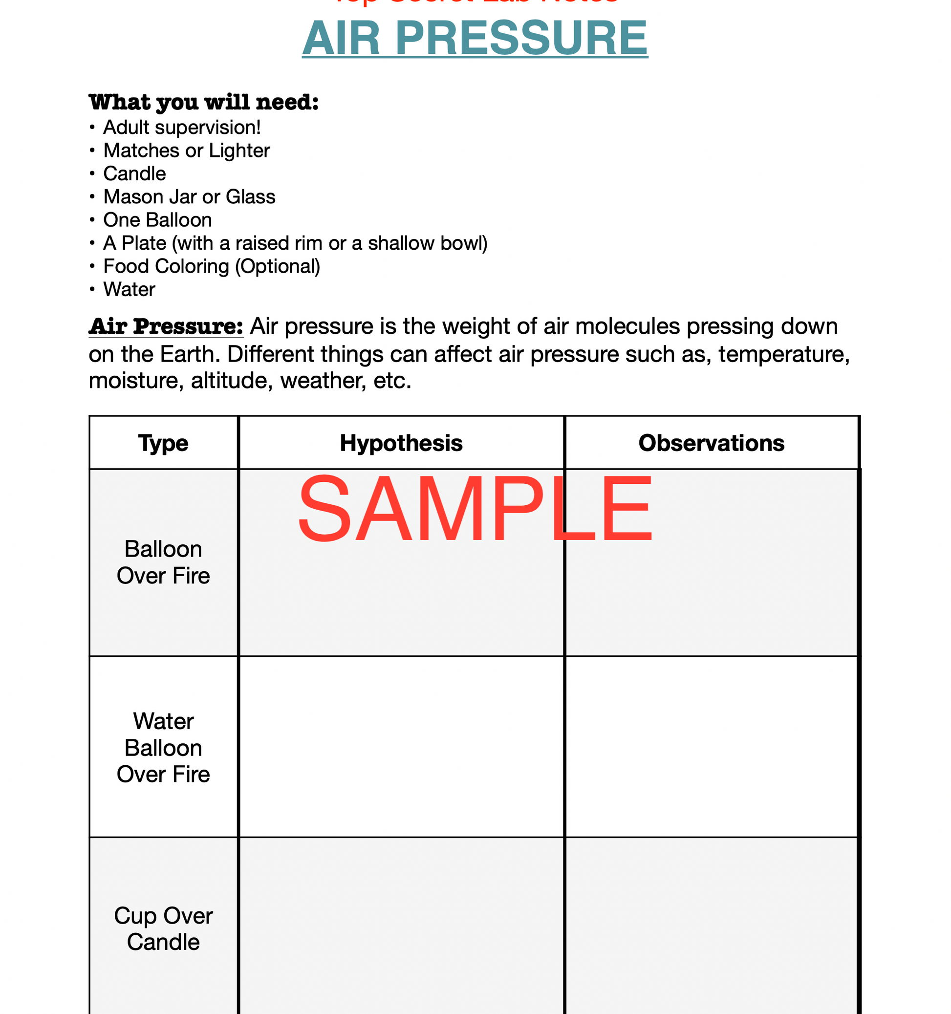 3-in-1 Air Pressure Science Experiment Journal & Step-By-Step Instructions