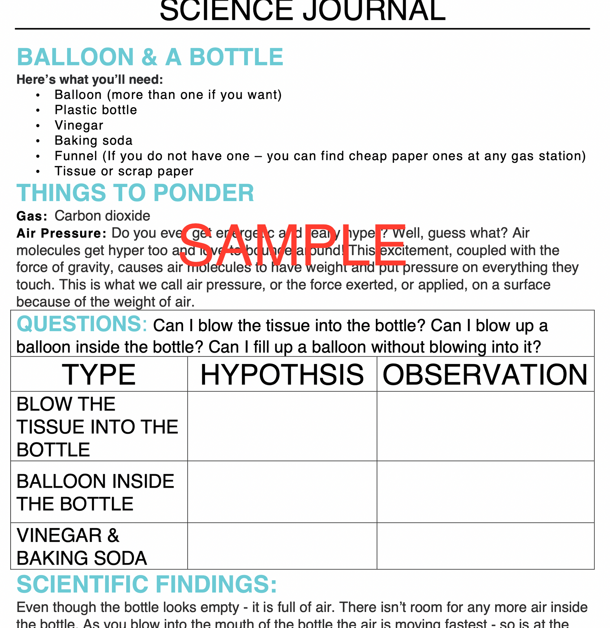 3-in-1 Balloon and a Bottle Science Experiment Journal & Step-By-Step Instructions