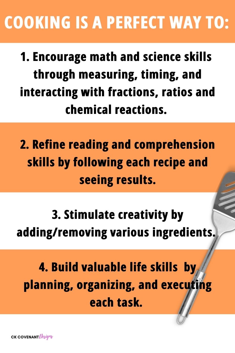 5. **Life Skills**: Cooking fosters essential life skills like responsibility, teamwork, patience, and time management.