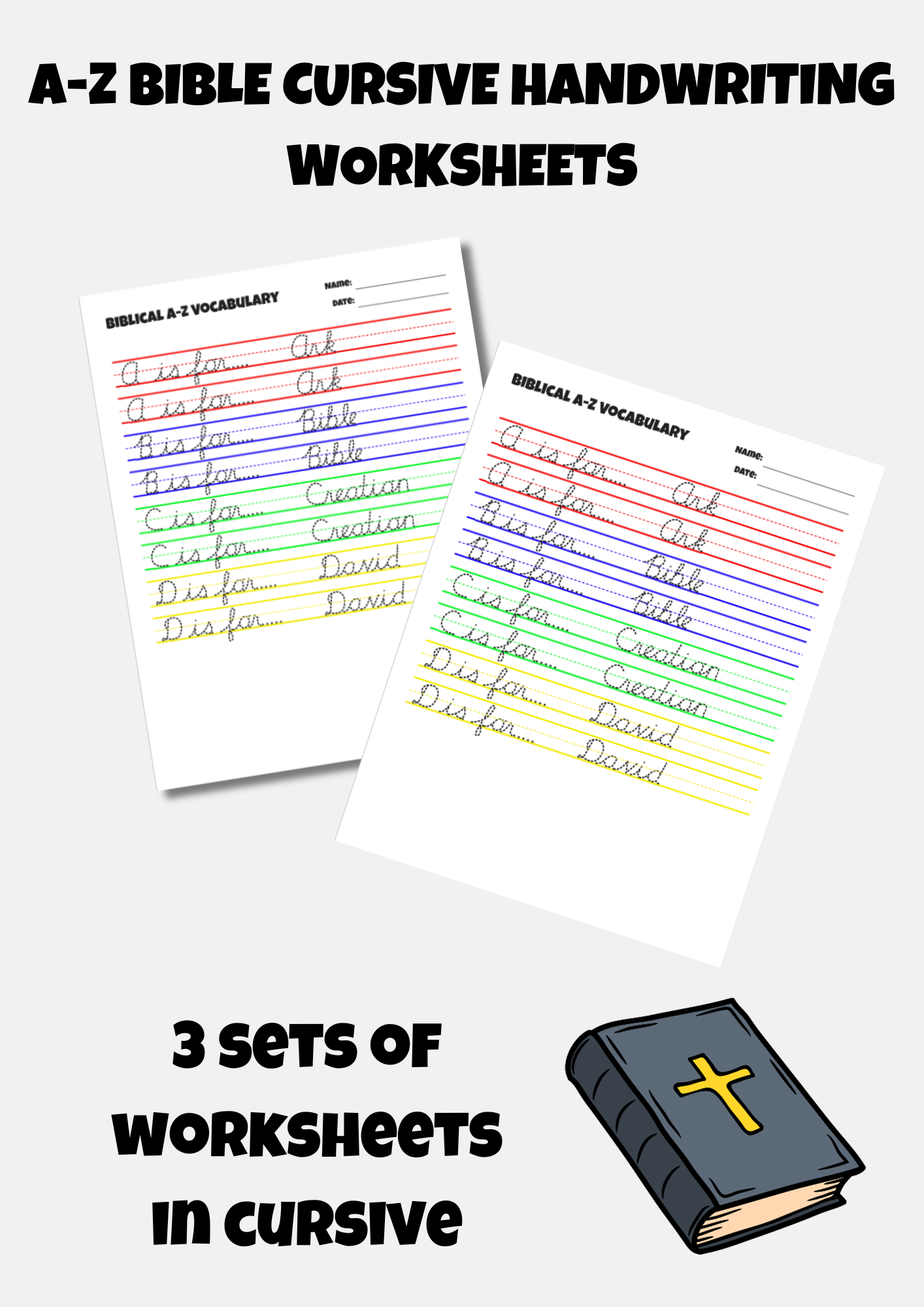 Engaging Design: Vibrant and visually appealing worksheets that captivate young learners while reinforcing biblical vocabulary and cursive handwriting skills.