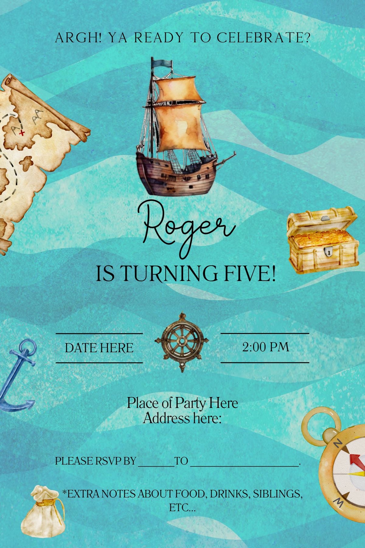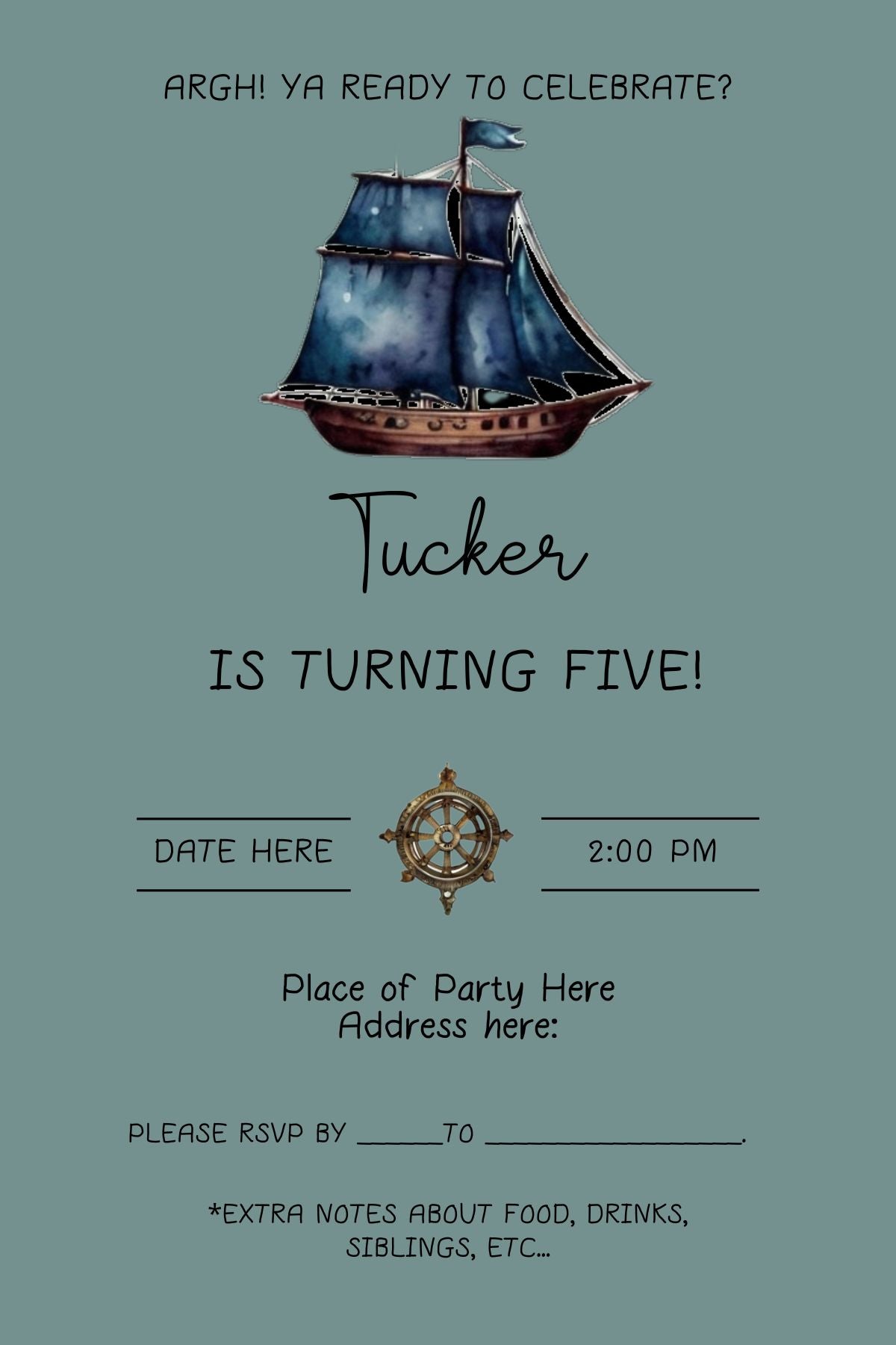 Keywords: Pirate, Ship, Birthday, Invitation, Invite, Template