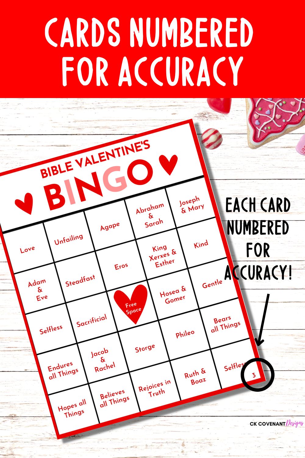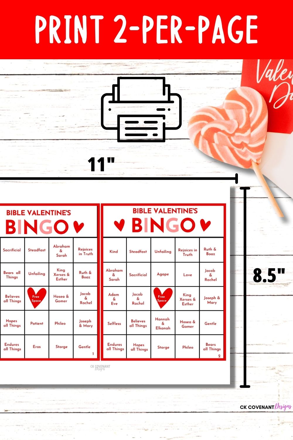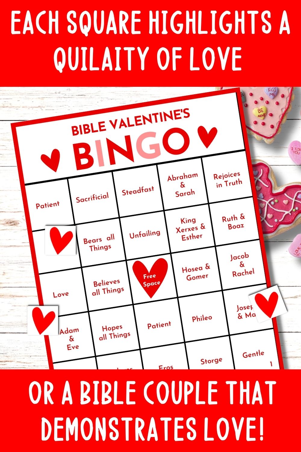 What a fun way to celebrate love than with these reminders from the Bible. Each bingo square highlights one of the following: