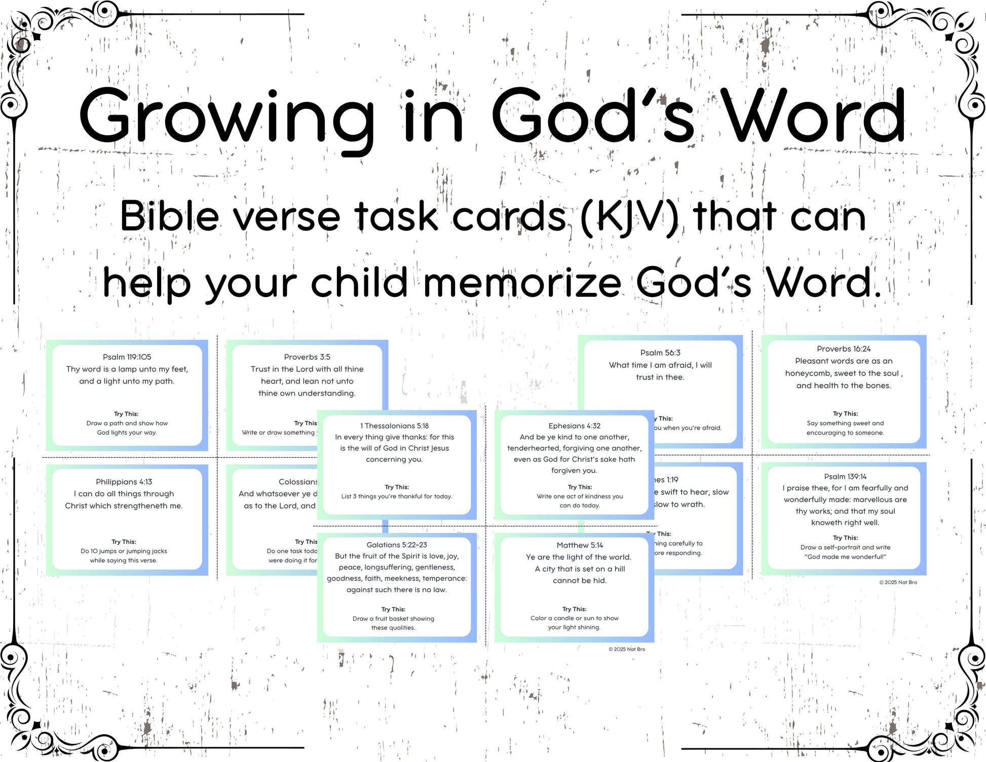 Bible Verse Task Cards for Kids (KJV) – Growing in God’s Word & Walking by Faith | Scripture Memory, Character Building, and Morning Devotions