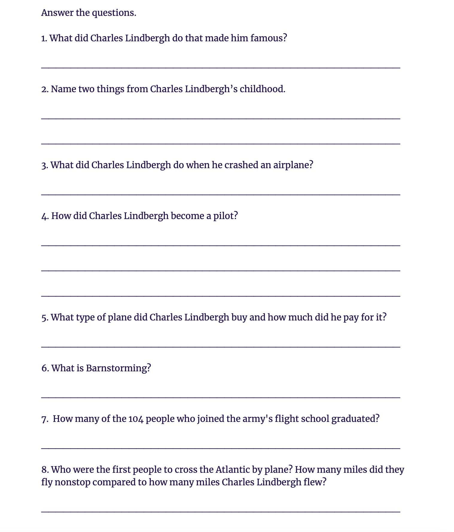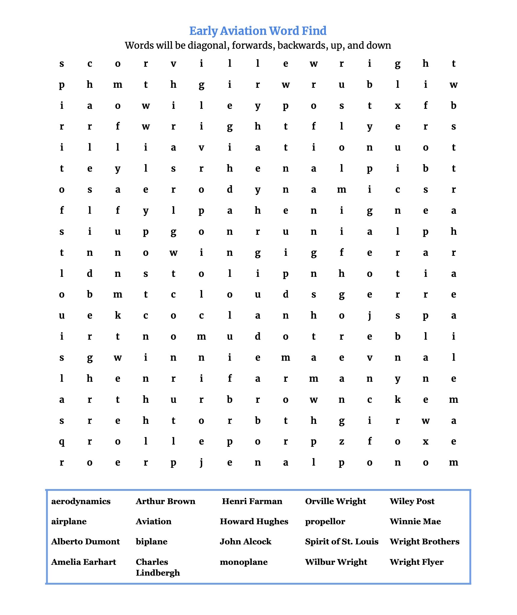 This is a history lesson with questions to answer, a word find, and a list of definitions of people and things related to early aviation. The digital download is 17 pages long. The lesson includes a reading section, open ended questions, a section including definitions of people and planes from early aviation and a word find. This lesson is good for middle school and high school, but can be adapted for younger kids who can read well.