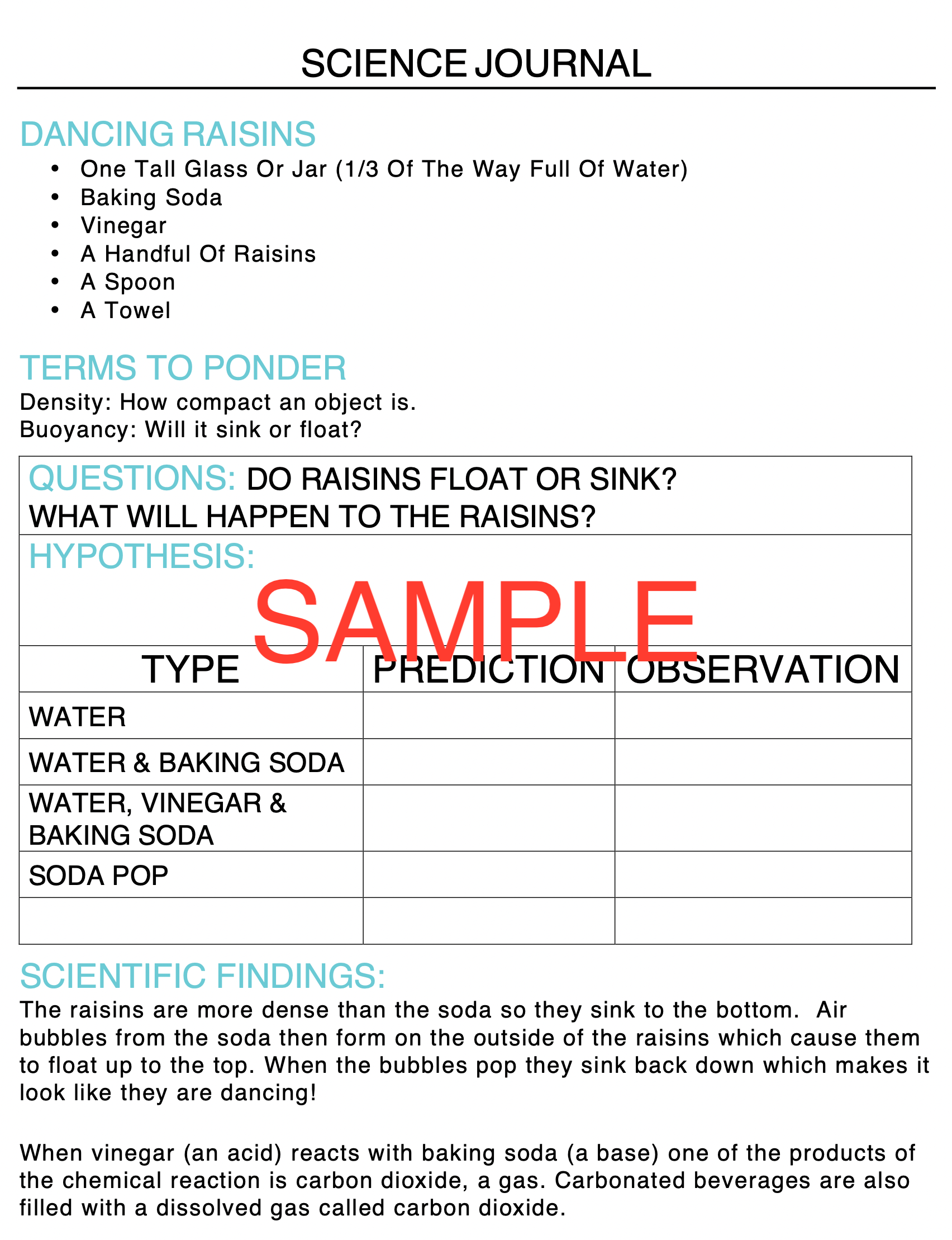 Dancing Raisins Science Experiment Journal & Step-By-Step Instructions