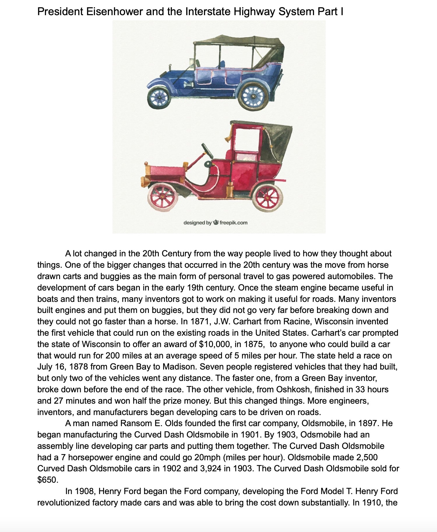 Next the lesson moves into a pretty funny and interesting to learn story about an American Army Convoy that inspired President Eisenhower to propose and fund the interstate highway system that we have today.