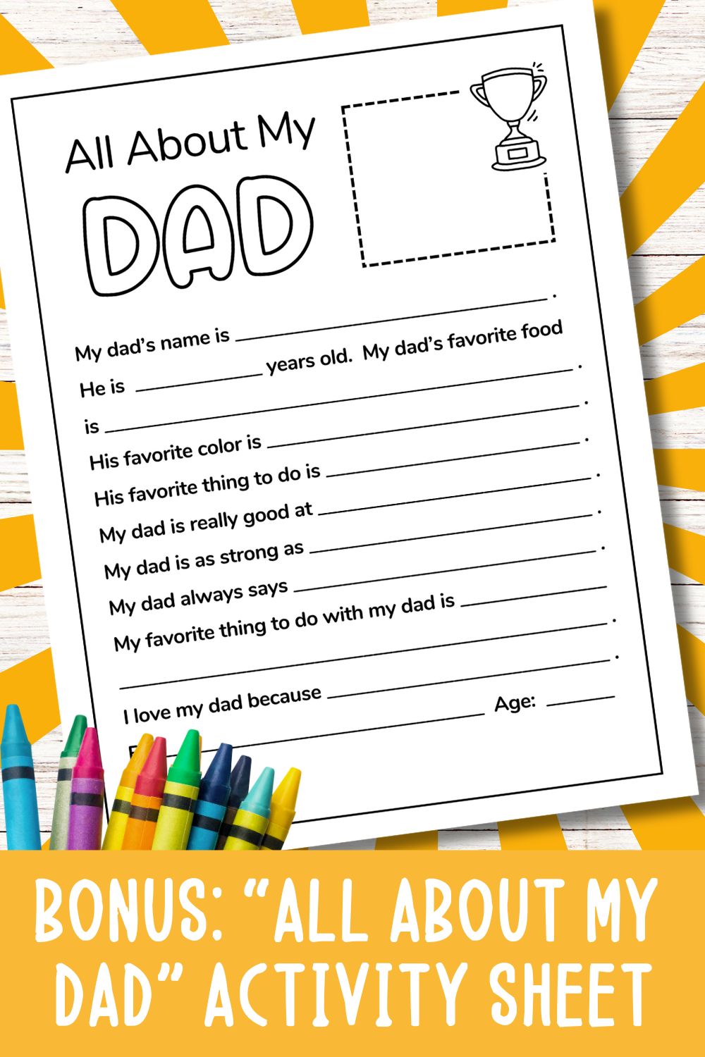 This product ALSO comes with a bonus "All About My Dad" worksheet!