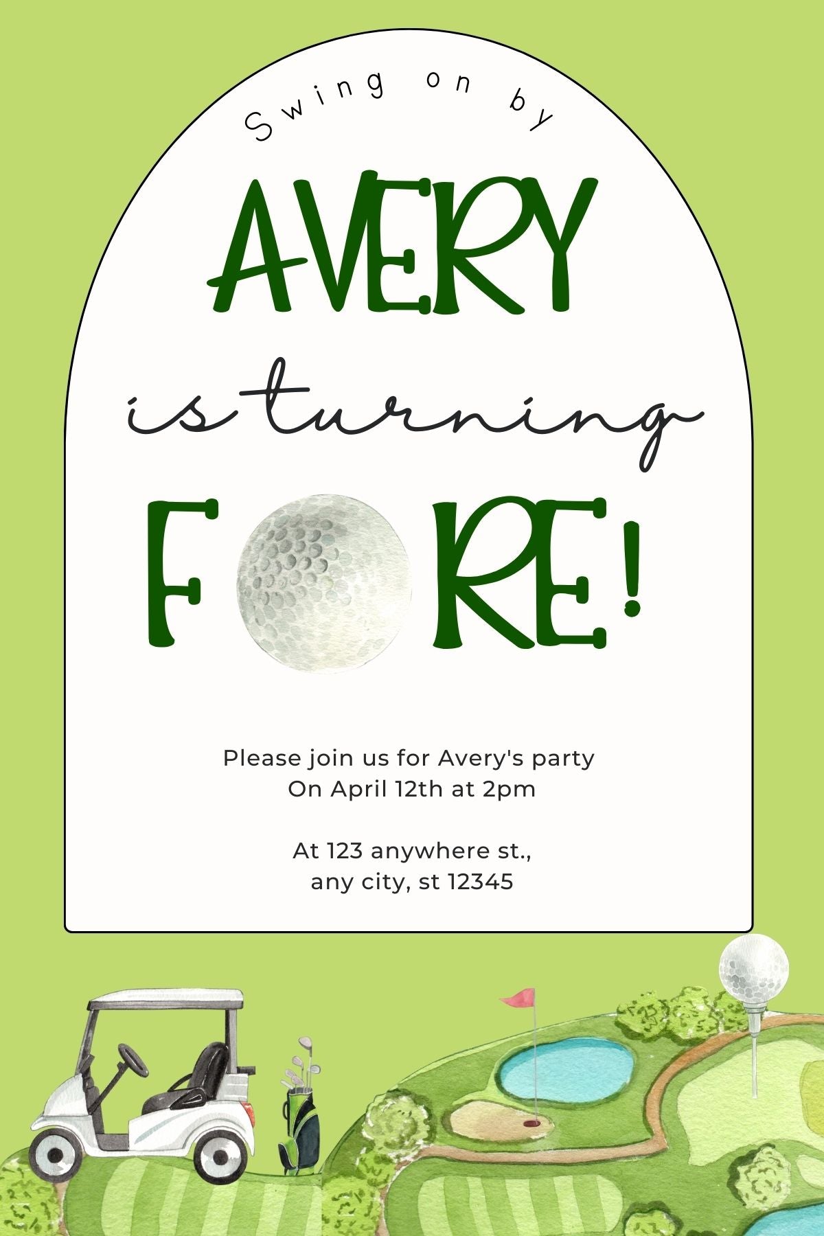 Golf Editable Birthday Invitation Template; Digital Resource; Customizable