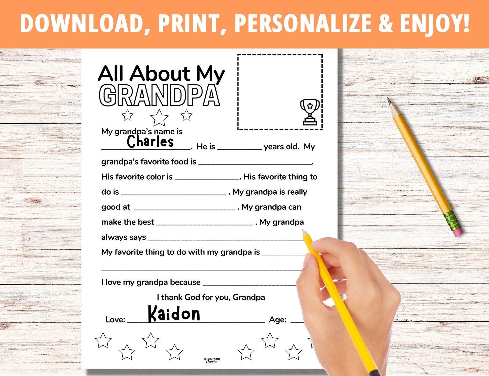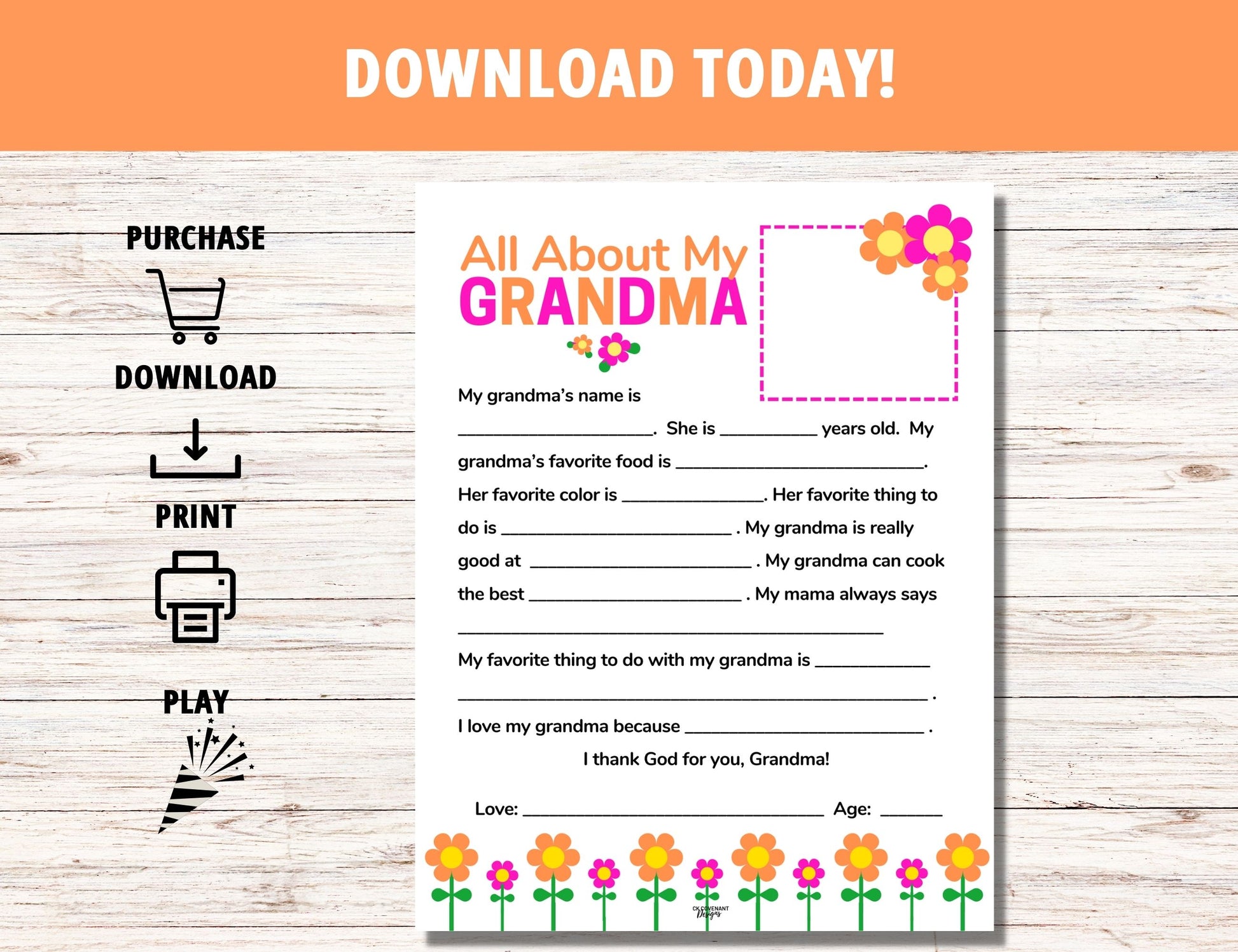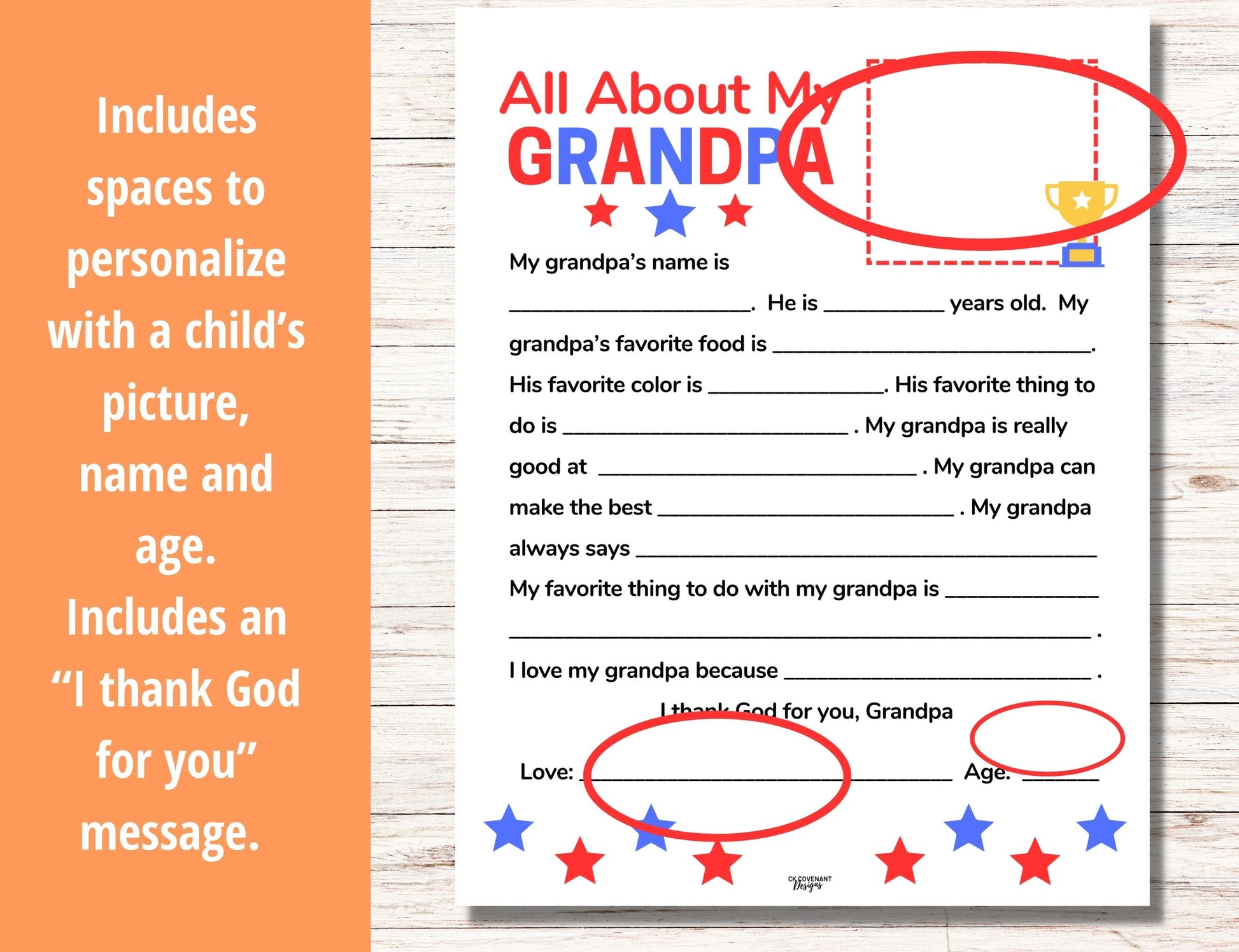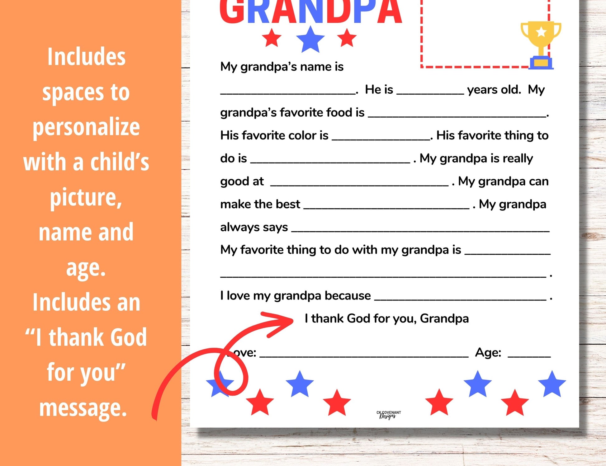 Space is included for grandchildren to include an extra-special drawing for the amazing grandparents in their lives. An additional message is added at the the end reading: “I thank God for you, Grandma/Grandpa”. Don’t miss out. Download today!