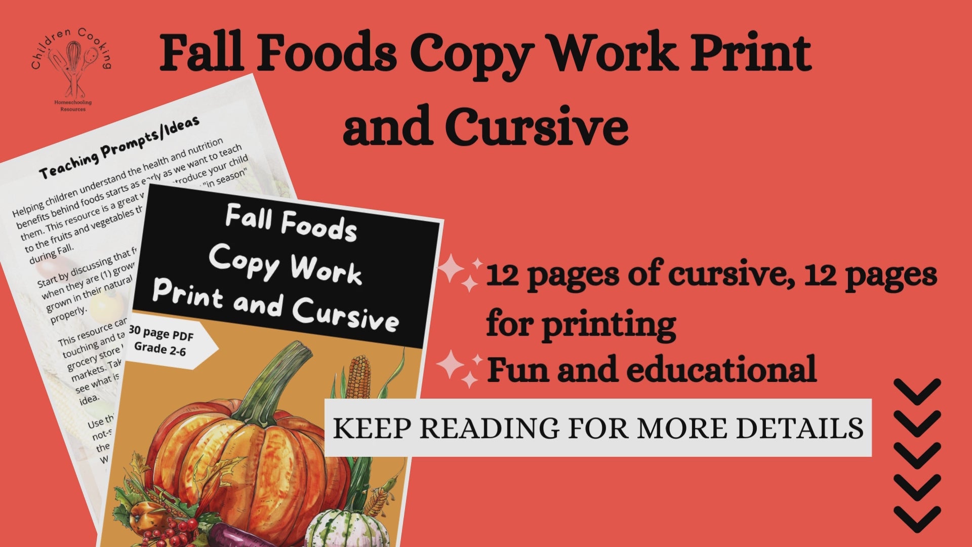 - Copy work pages featuring short, age-appropriate fall food facts in easy-to-read pr and cursive.