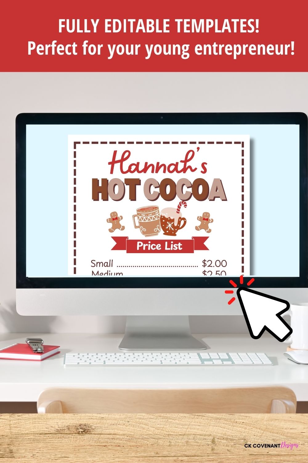 The PERFECT way to get your young entrepreneurs ready for the Christmas holiday with these fun, beautiful, fully-editable Hot Cocoa Flyer Templates. Take the hassle out of thinking of ideas on what to sell. Use our fully customizable hot cocoa stand flyer templates to change names, colors, fonts, and pictures!