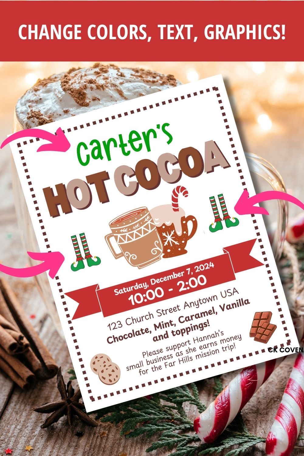 Hot Cocoa Flyer Template, Editable Hot Cocoa Bar Flyer Template, Hot Cocoa Invitation, Hot Cocoa Stand Signs, Editable Hot Cocoa Flyer, Life Skills for Kids, Homeschool Resources