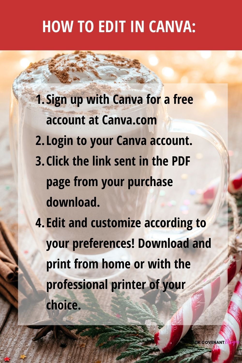 1. PDF download of Hot Cocoa Flyer Template Link and Canva editing and printing tips.