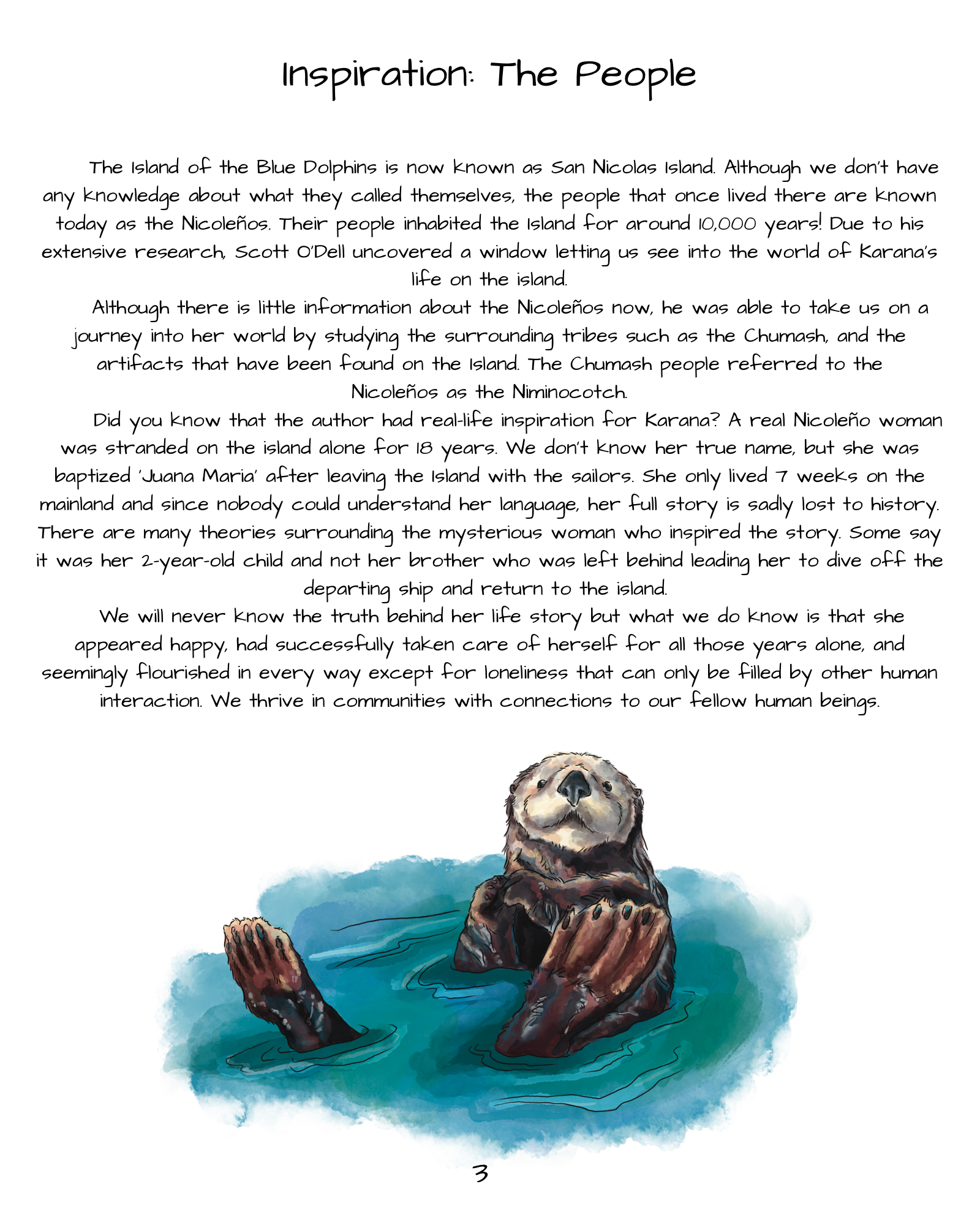 book, The Island of the Blue Dolphins. It includes history and culture of the people in the story.