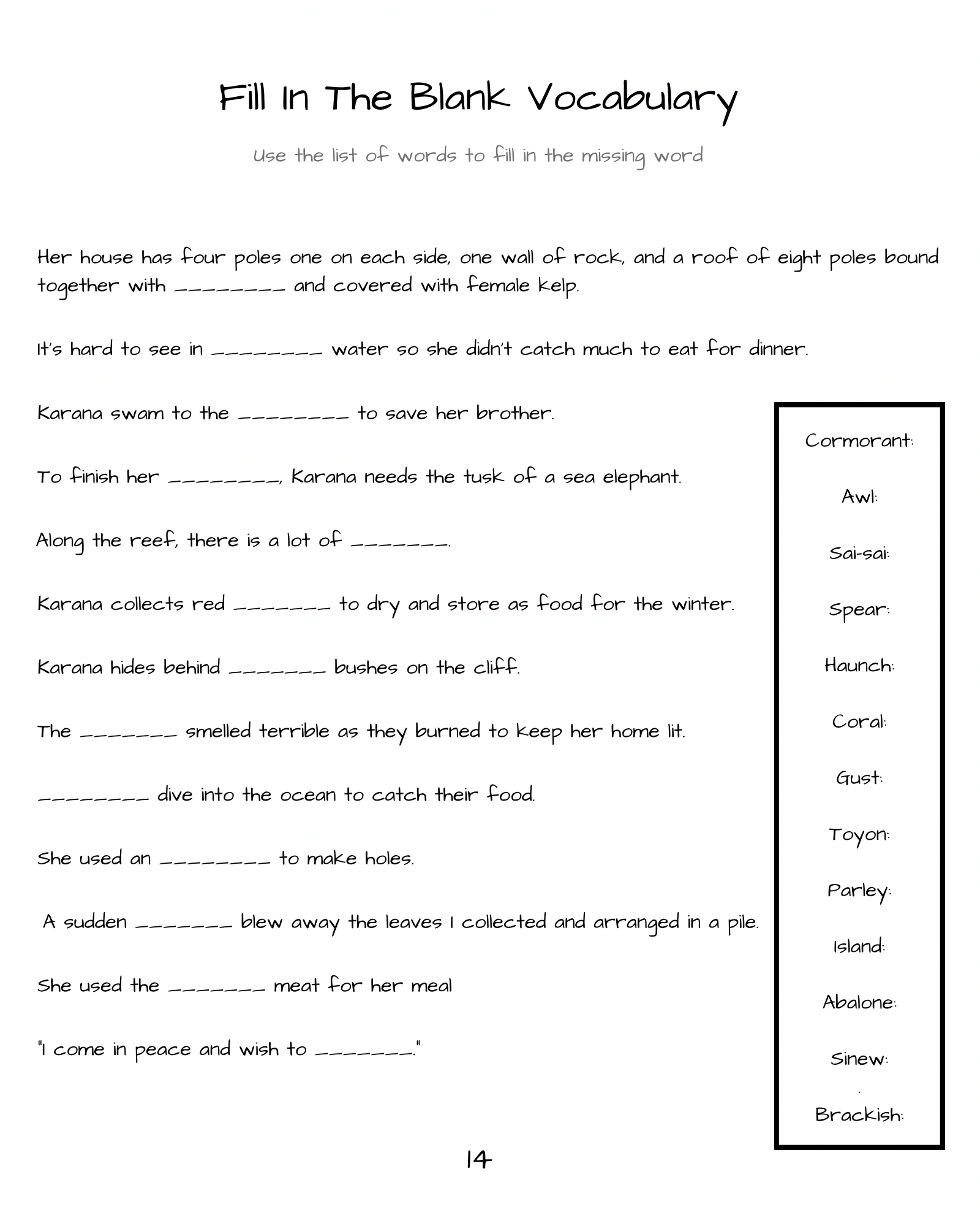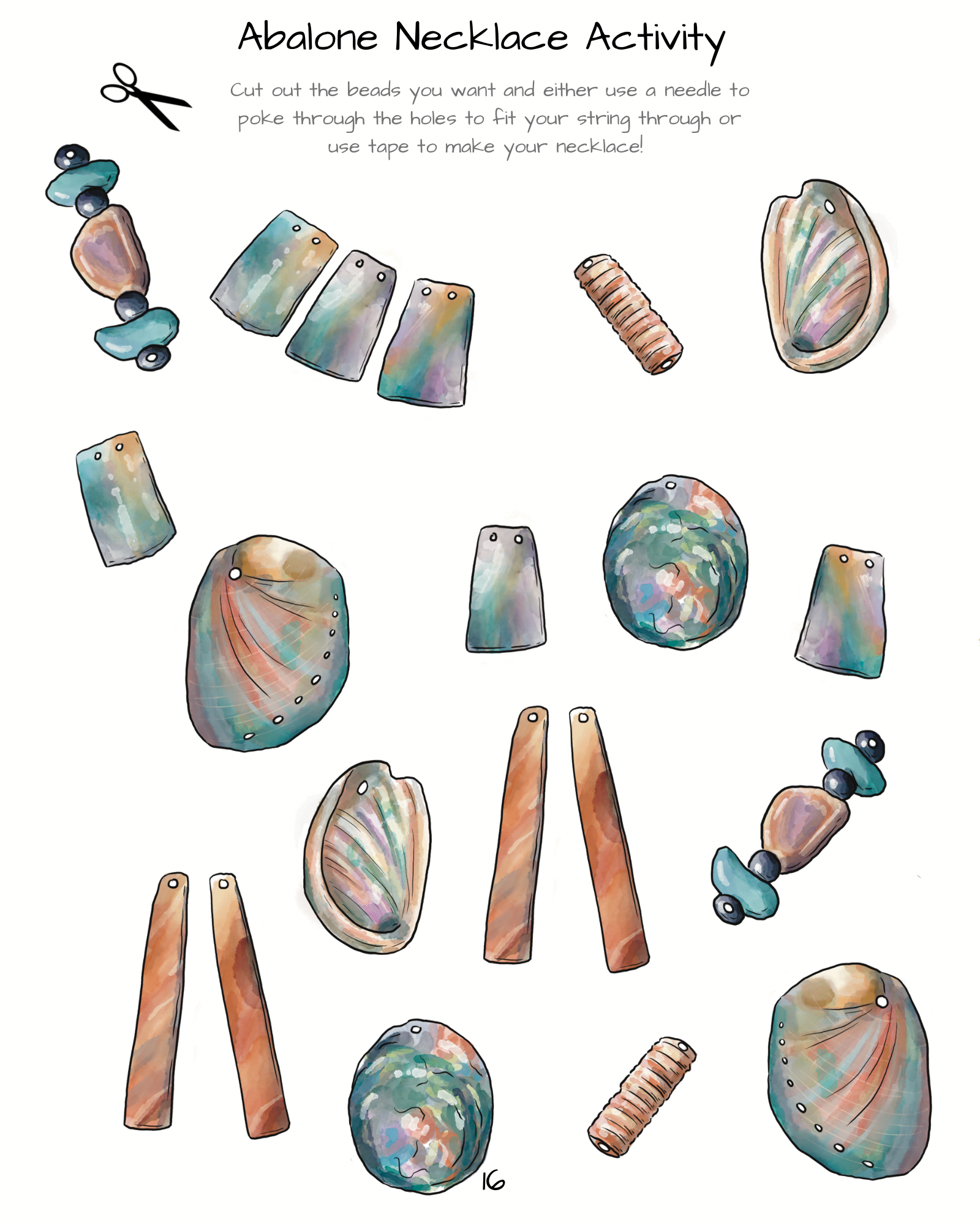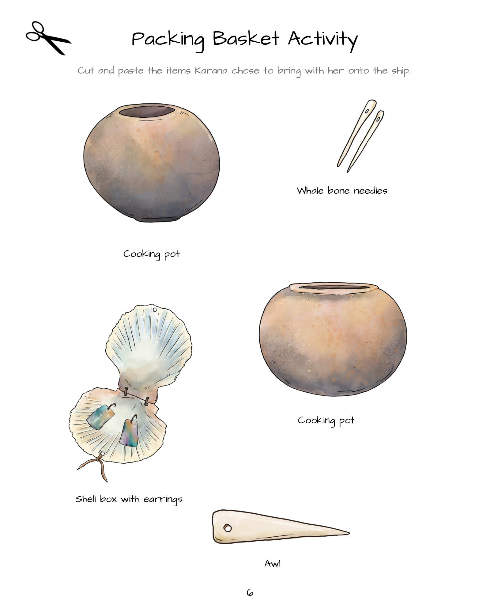 There are interactive paper crafts such as creating her abalone necklaces and packing her basket for the trip.