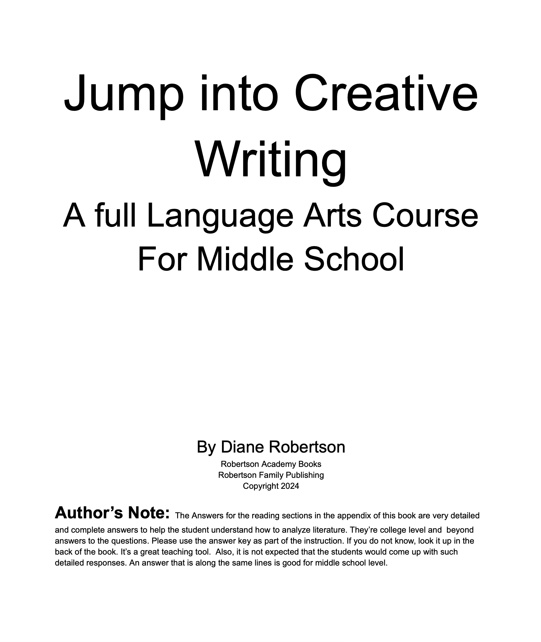 Jump Into Creative Writing, A Full Language Arts Course for Middle School