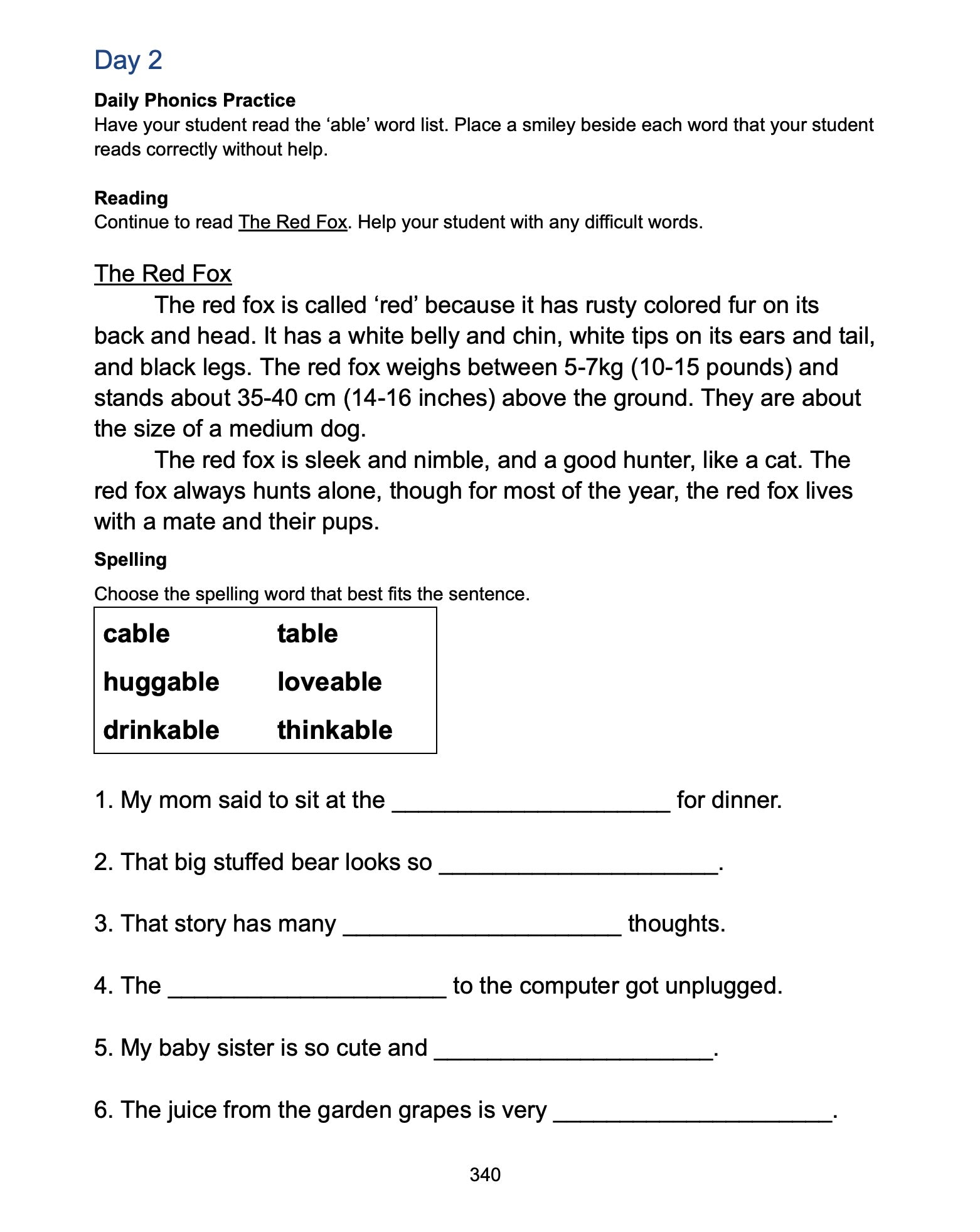 Learn to Read and Write: A Phonics Approach to Reading Level 2 (466 Pages!) is a full year's language arts course that teaches your student to read, write, spell, and do early punctuation and grammar.