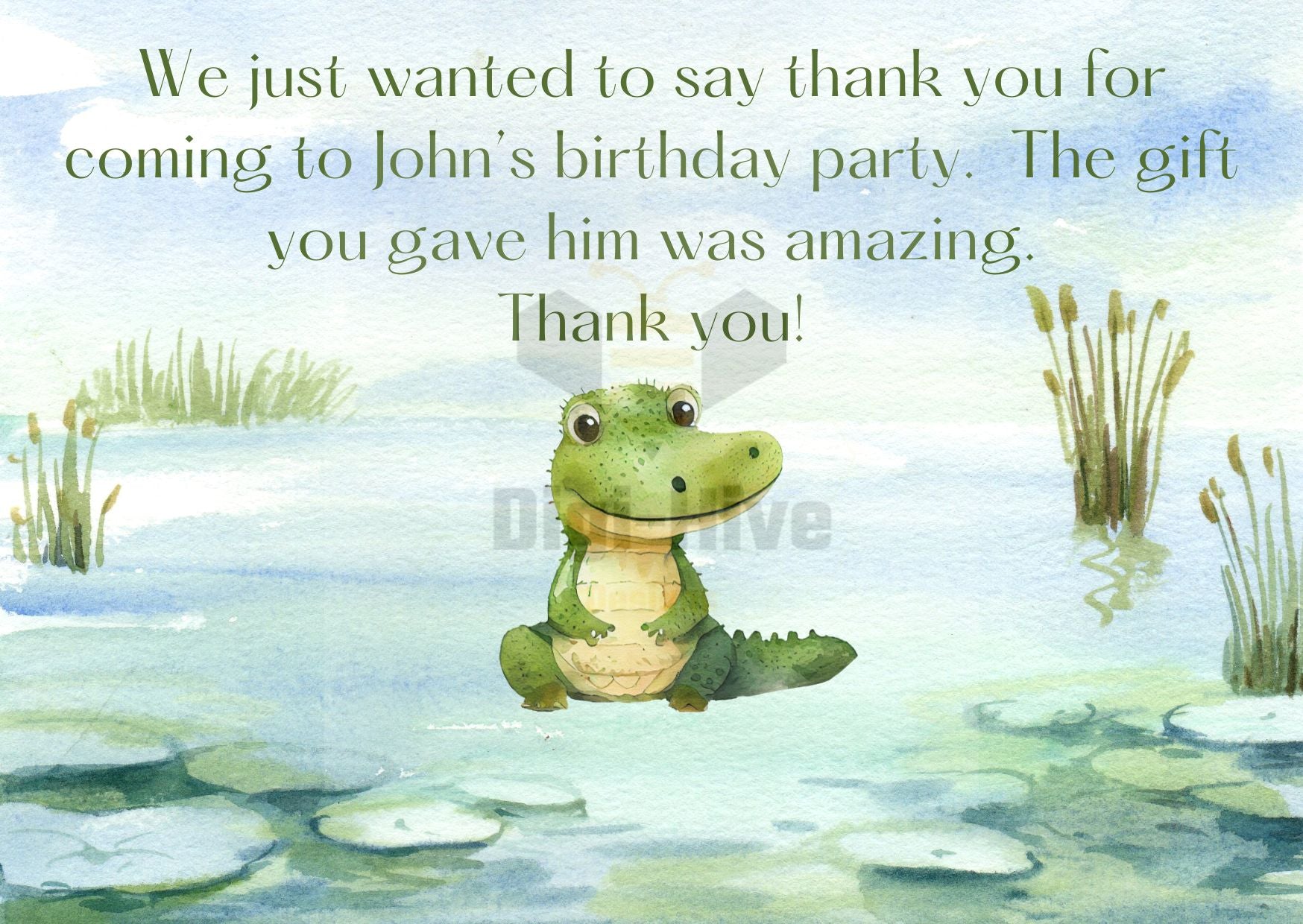 Look Who's Turning One: Alligator Thank You Card Editable Template Link