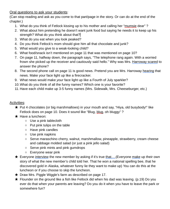 Mrs. Piggle Wiggle's Farm Guided Reading/Book Study