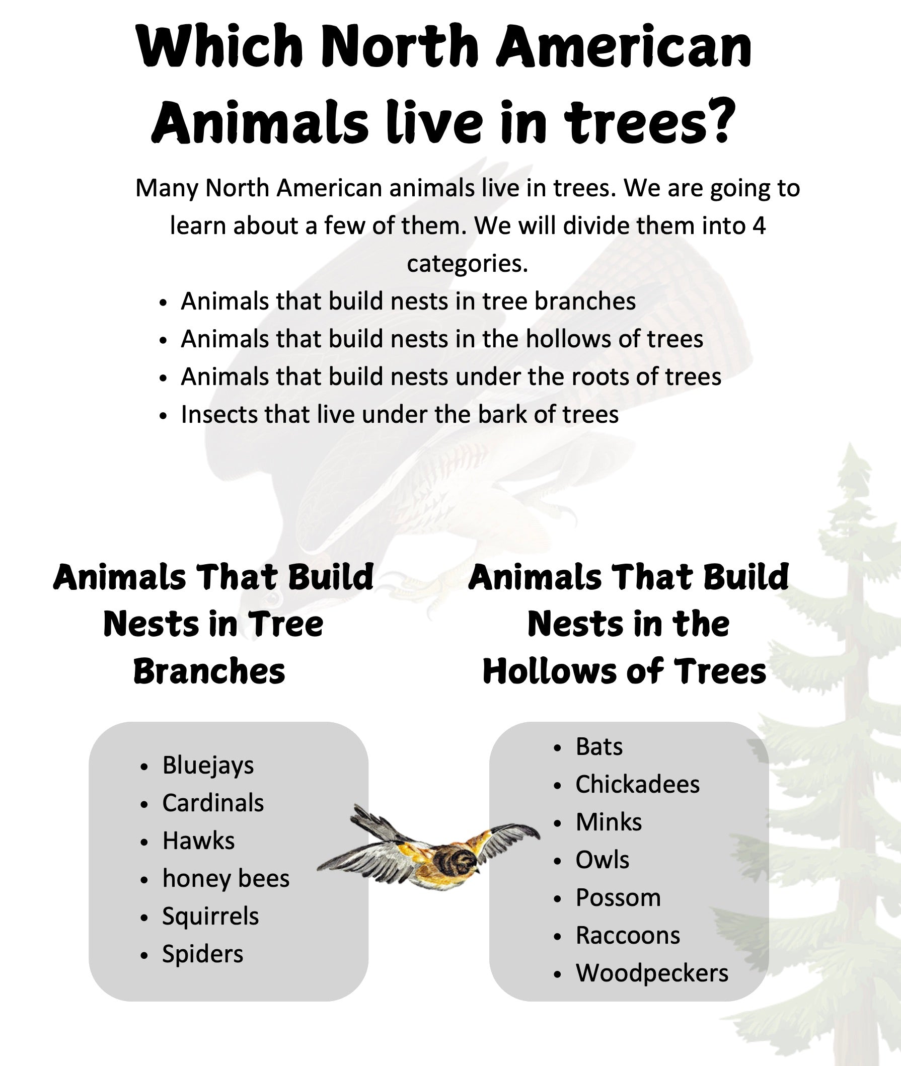 North American Animals that live in trees is a nature/science lesson adaptable for pre-k to 2nd grade.