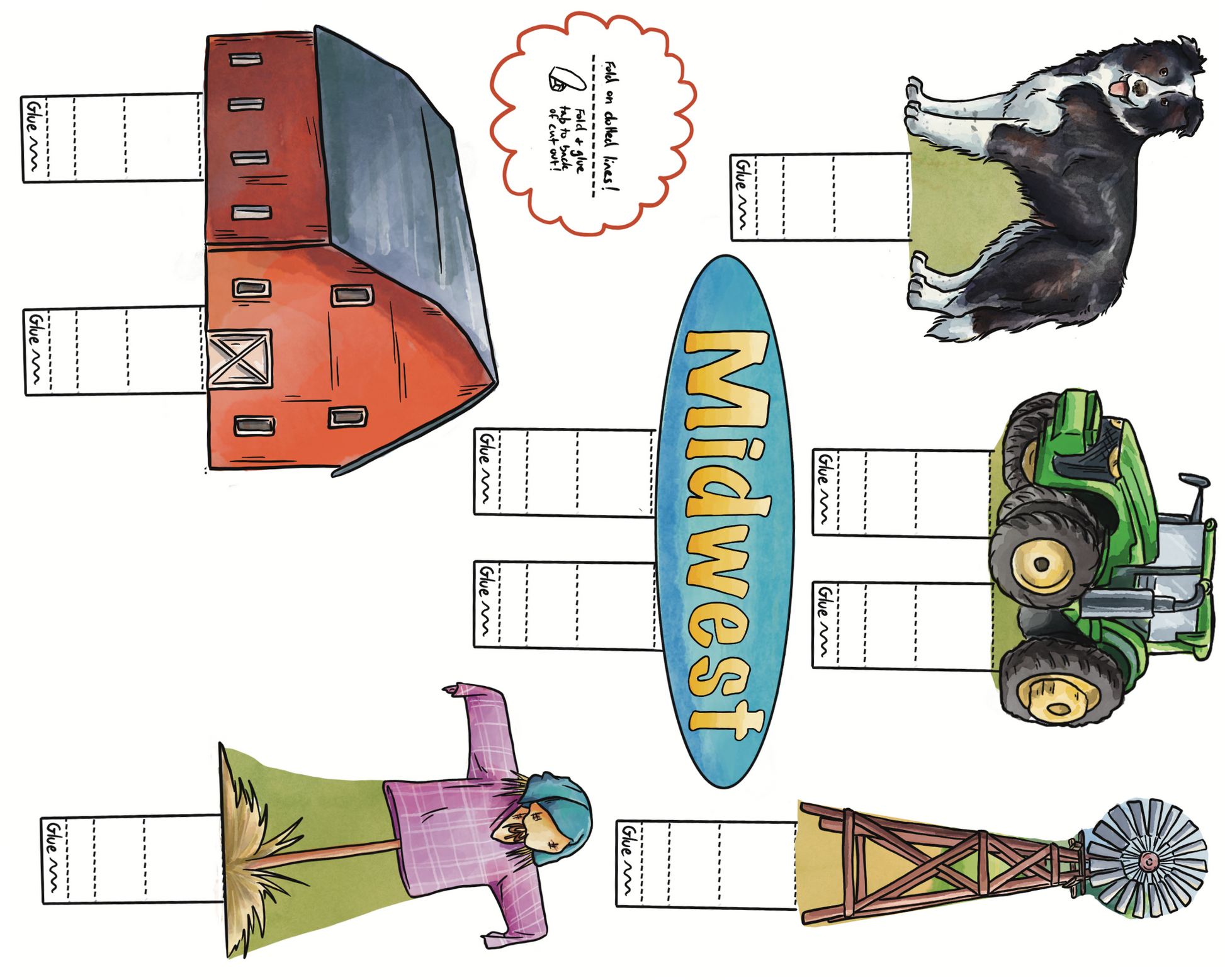 Each region also has a cut and fold diorama to create as a reward for completing those states.