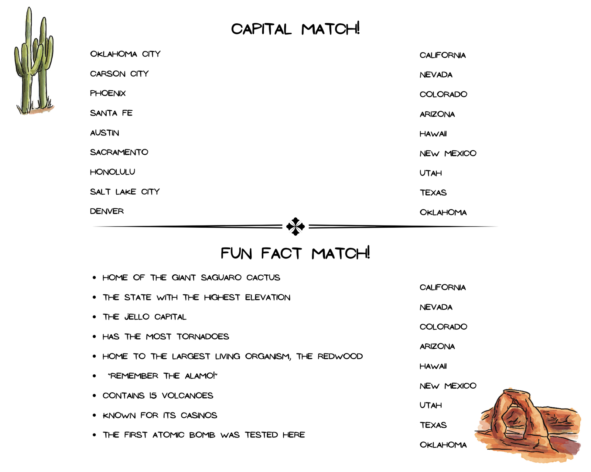 Word match games for fun facts and capital instill confidence and enjoyment in learning about our great country!