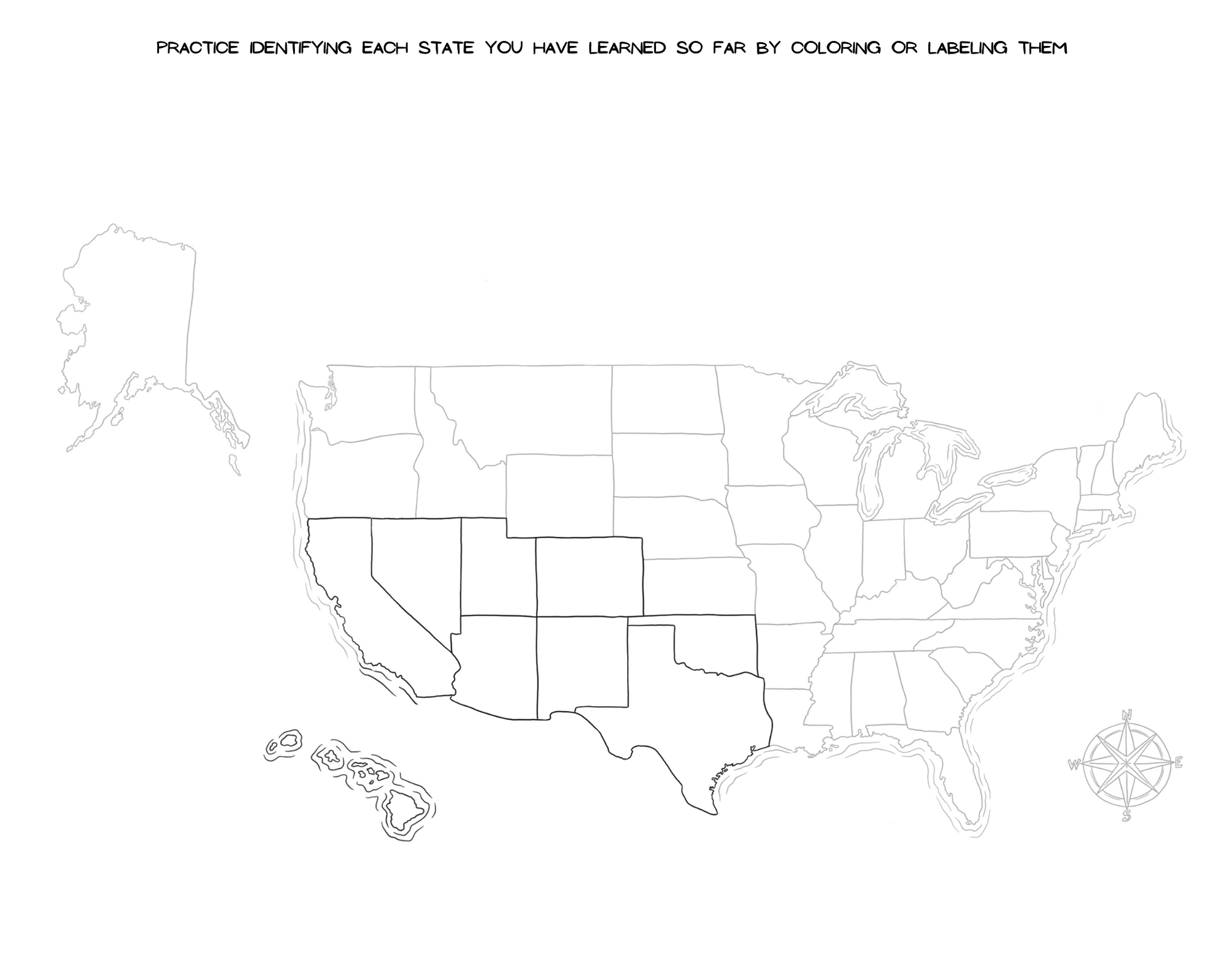 We offer a crossword for each region giving the students directional clues to identify each state (this can be modified for skill level by allowing them to use a map while following the clues).