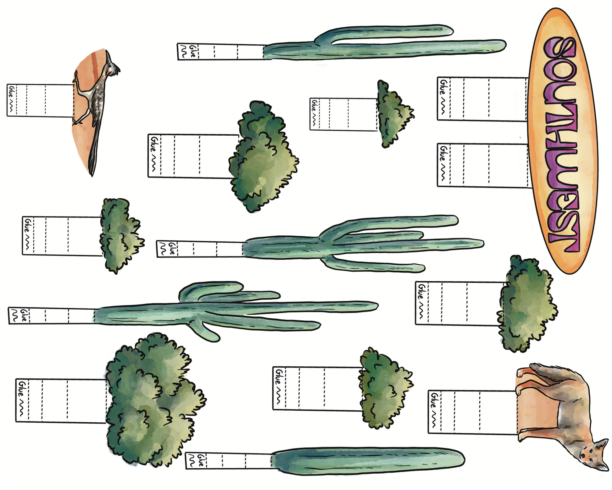 Each region also has a cut and fold diorama to create as a reward for completing those states.