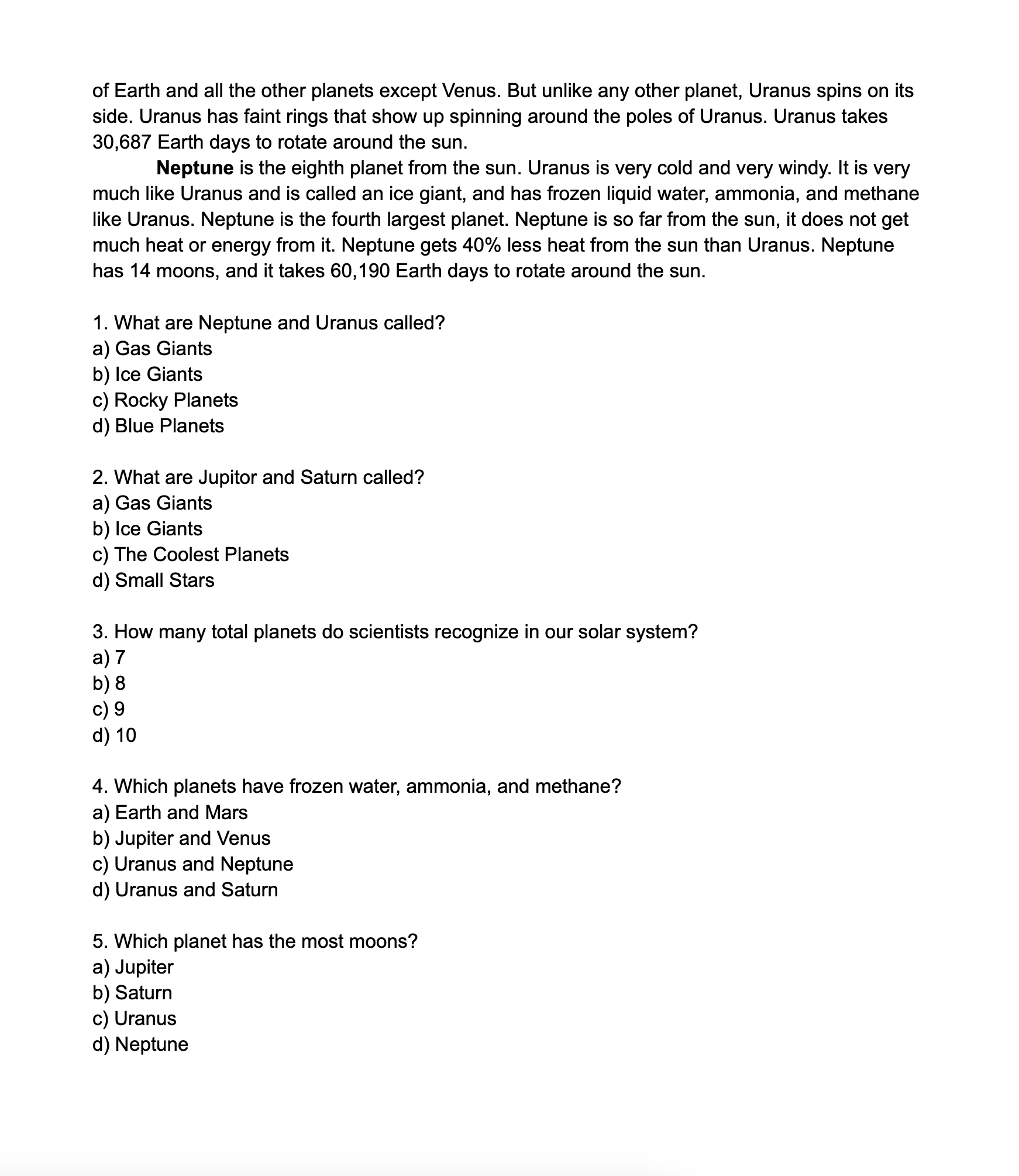 Our Solar System is a science lesson for 1st to 3rd grade students. It begins with 3 reading sections, written at a 3rd grade reading level that discusses what a solar system is, what is included in it, plus fact sections about each of the planets.