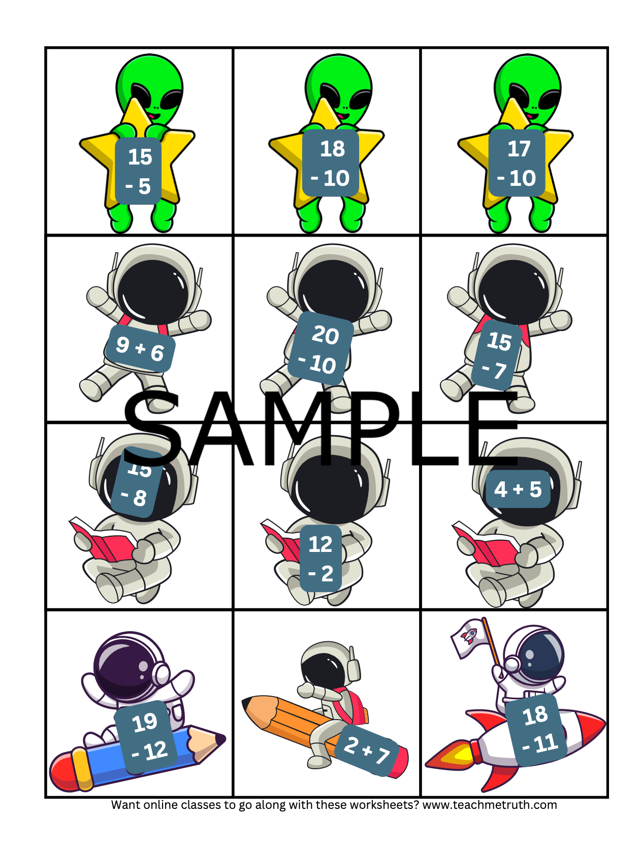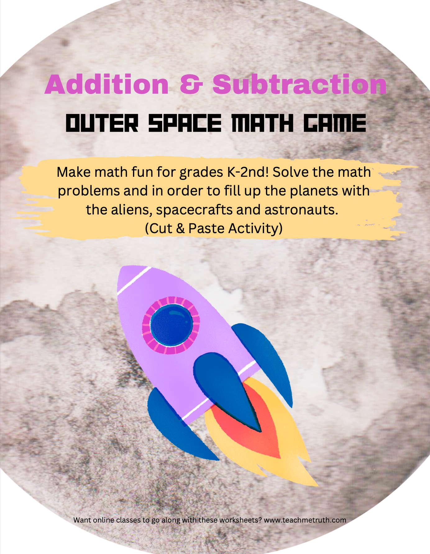 Make math fun for grades K-2nd! Solve the math problems in order to fill up the planets with space themed images! (Cut & Paste Activity)