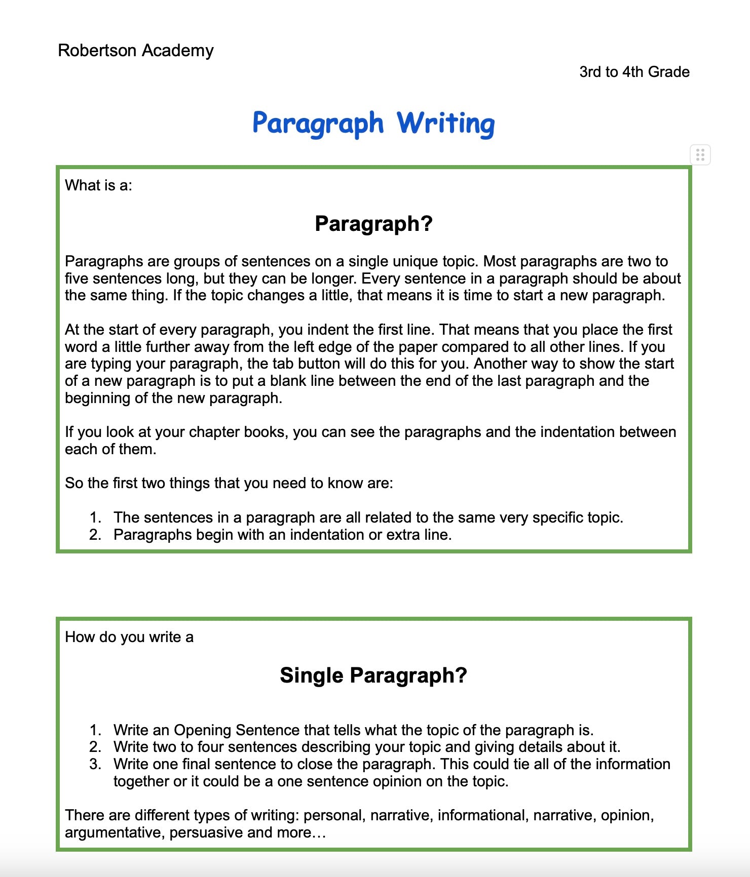 This product is a pdf digital download. It is a single lesson on what a paragraph is and how to write a stand-alone paragraph.