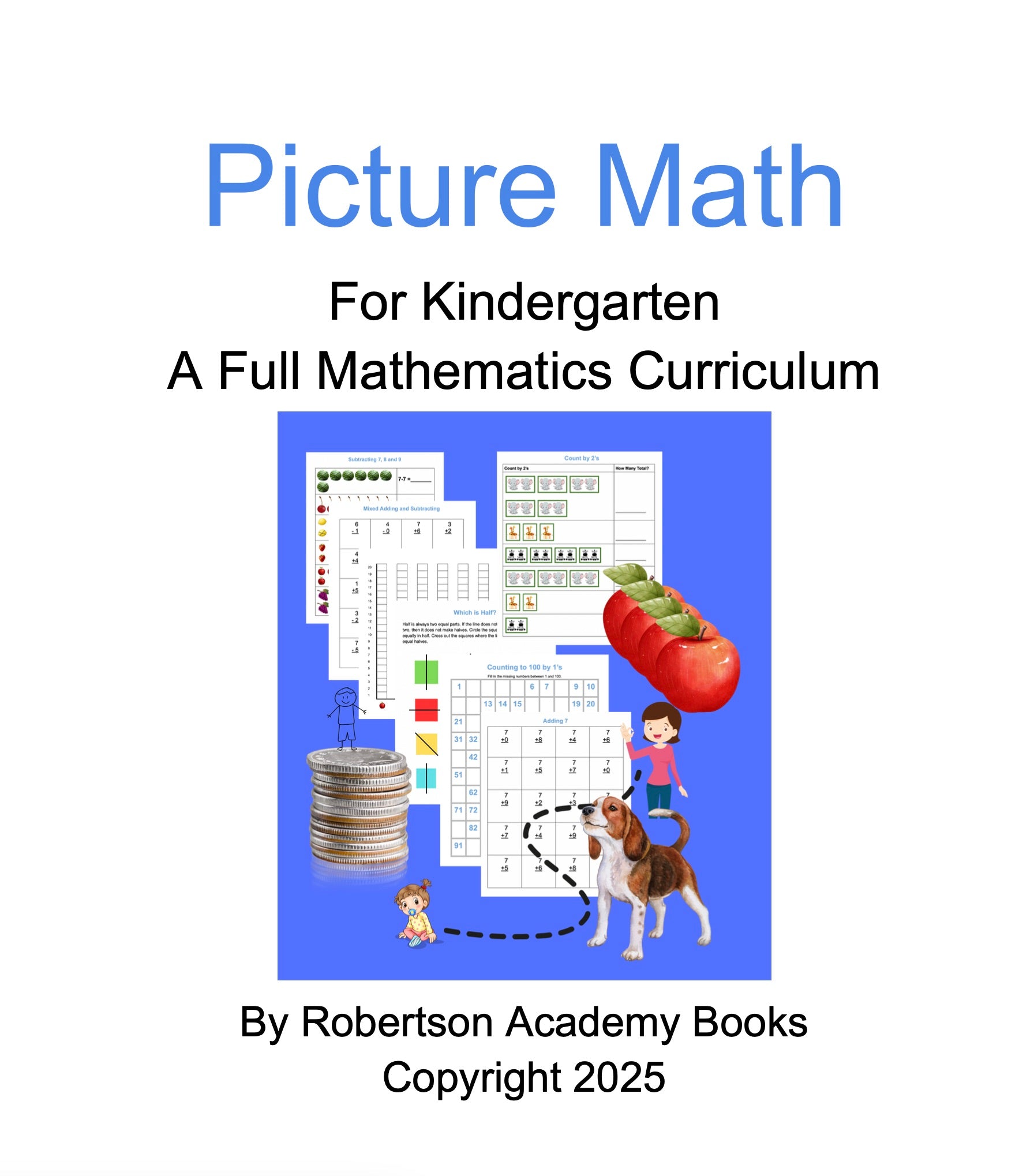 Picture Math for Kindergarten is 200 pages long. This is a printable digital file.
