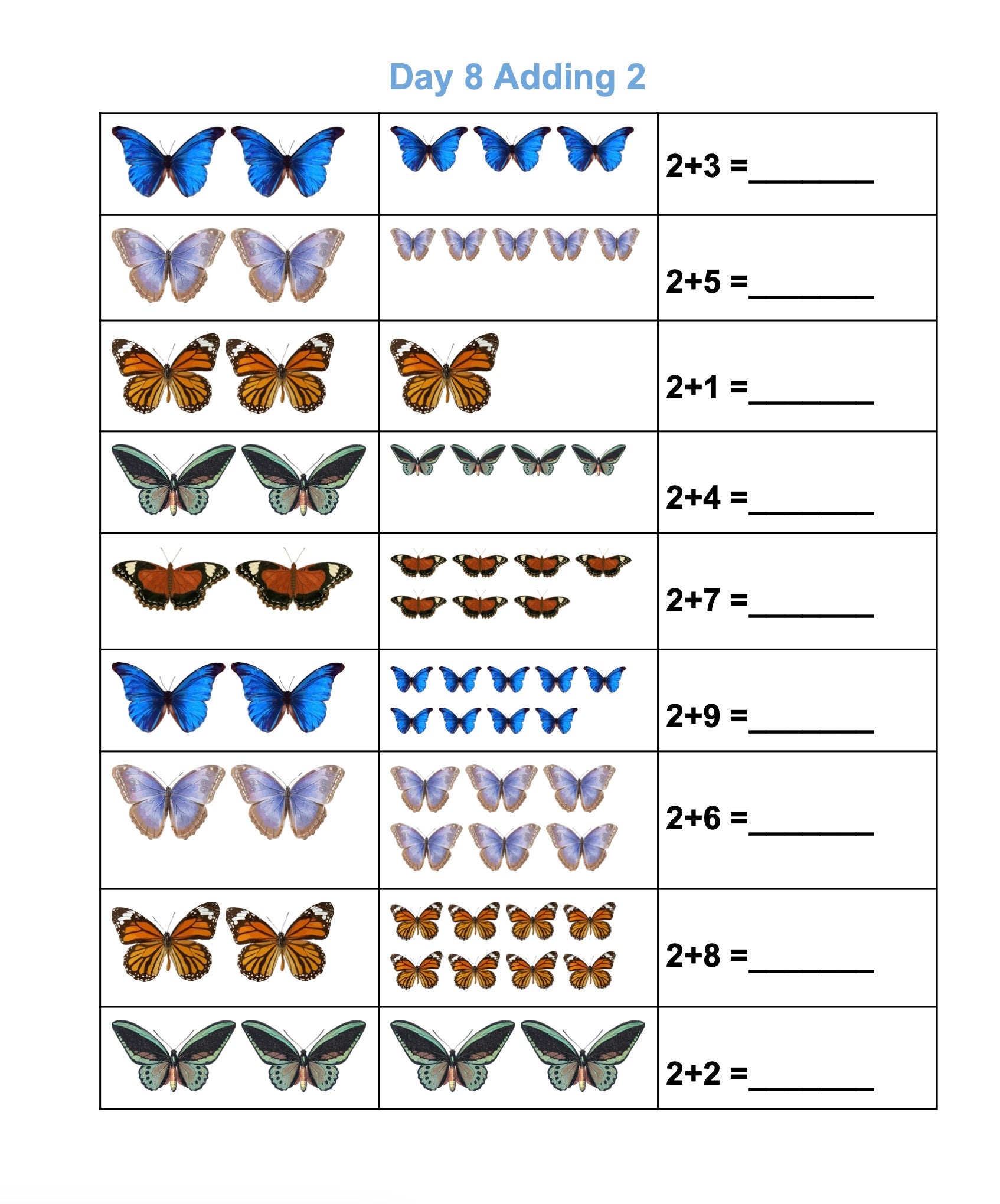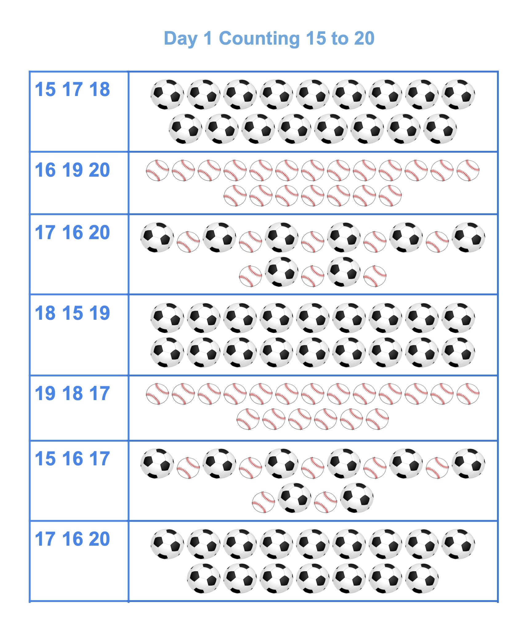 This course starts with incremental learning, tracing and counting between 15 and 20. It then moves to adding one, adding 2, adding 3, etc... onto adding 9.