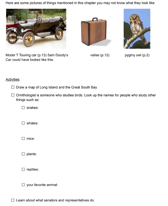 Your students will love hearing about the Pyes’ summer vacation and doing activities the Pyes did. This includes eating the foods the Pyes ate and balancing sticks on the end of their finger or nose like Jerry does. They’ll also love to bird watch, build wagons and mailboxes, and sleep in sleeping bags.